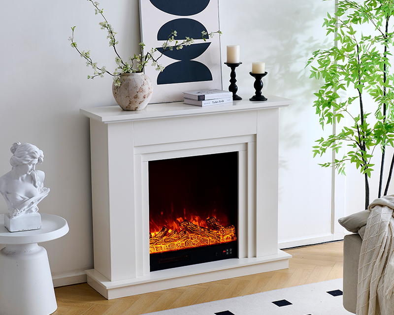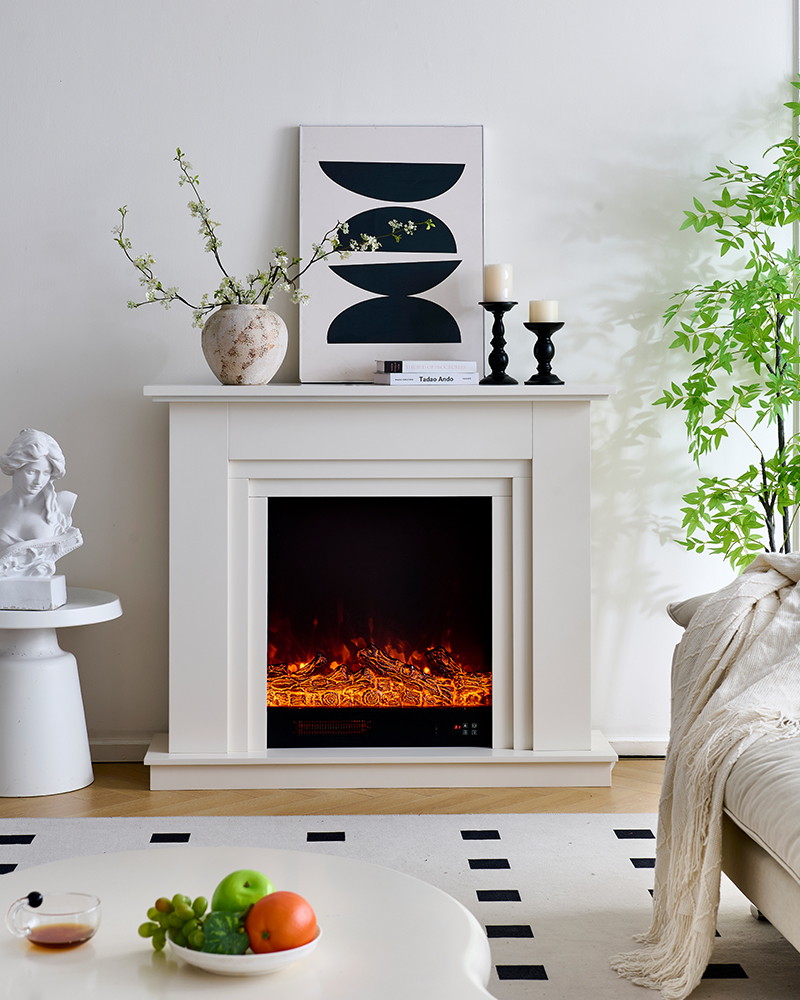 Source Fireplace Craftsman's high-demand electric fireplace mantel combo, featuring a modern white fake mantel and fireplace surround. This unit is built as Ready-to-Assemble (RTA), drastically cutting your shipping and warehousing costs while simplifying logistics. It houses powerful wholesale electric fireplace heaters with assured safety (overheat/tip-over protection). Core functions include 2-stage heating (750W/1500W), custom flame effects (1-5 gear speed/brightness), and a 1-9 hour timer control, ensuring high customer satisfaction and minimal post-sales hassle.