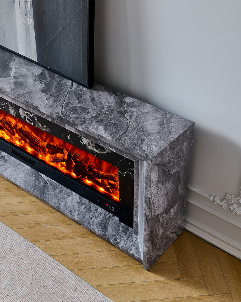 Enhance any modern interior with our premium white wood surrounds for fireplaces, crafted from eco-friendly E0 MDF. The wide electric fireplace insert creates a grand visual effect, while the clean white finish and minimalist lines add a contemporary, bright touch. The spacious top surface accommodates decorative items like vases, sculptures, or bottles, and the realistic charcoal-style flame brings warmth and cozy ambiance year-round. Lightweight yet durable, this fireplace surround is easy to install, low-maintenance, and blends seamlessly with modern home or commercial spaces.