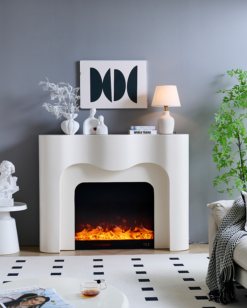 As one of the professional electric fireplace suppliers in China, Fireplace Craftsman presents a refined wood mantel set featuring a unique wavy surface design and an elegant matte finish. This modern fireplace mantels direct kit combines artistic aesthetics with functional performance — perfectly housing a single-color flame insert that offers 5 adjustable brightness and flame speeds, a 1–9 hour timer, and dual 750W/1500W heating modes. With built-in overheating protection, a remote control, and a convenient control panel, it ensures both safety and comfort.