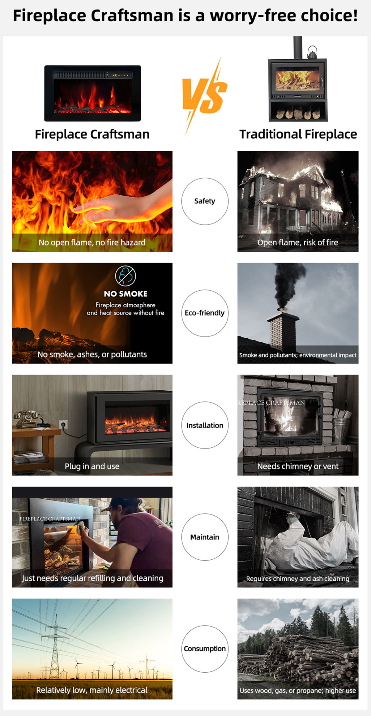 When properly selected and deployed, electric fireplaces provide: