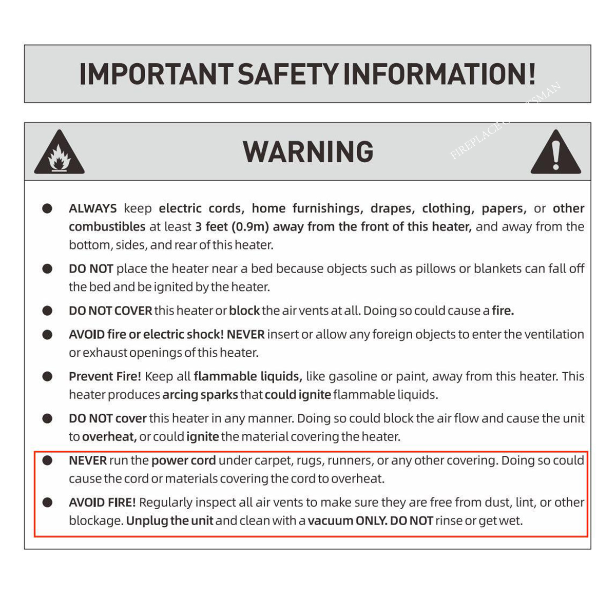 Electric Fireplace Carpet Safety Notes (Dealer Checklist)