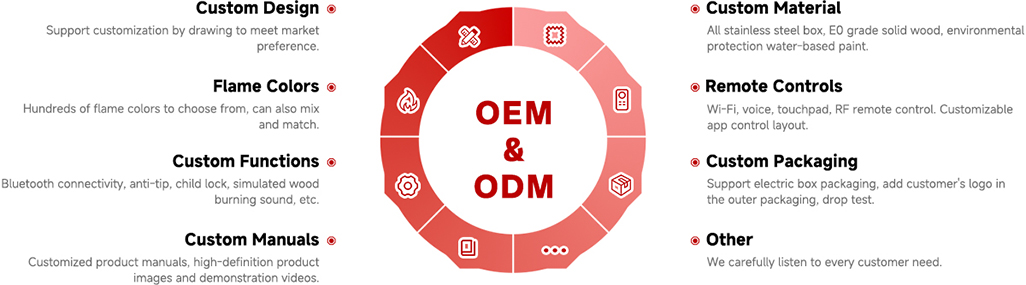 Whether you need basic models or a high-end customized electric fireplace system, we can provide the right products and production capacity to meet your needs.
