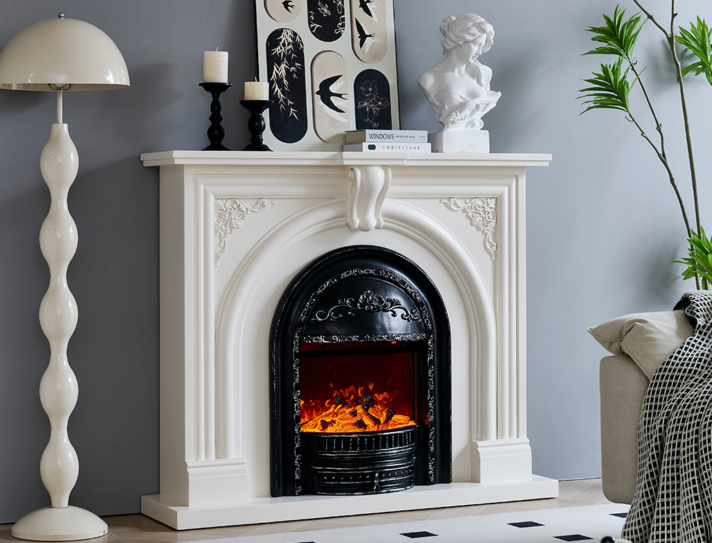 This electric fireplace is a perfect fusion of classic aesthetics and modern technology. It uses E0-grade eco-friendly wood boards for its main body, ensuring robustness and durability. Its design is inspired by genuine Victorian-era fireplaces, with intricate resin carvings and faux-cast iron details that faithfully reproduce the vintage style. This makes it a top choice for consumers who appreciate traditional and elegant home decor.