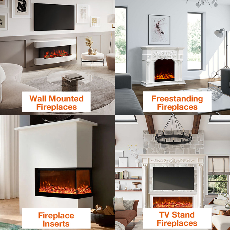 Electric fireplaces come in various types, each suited to different needs and spaces: